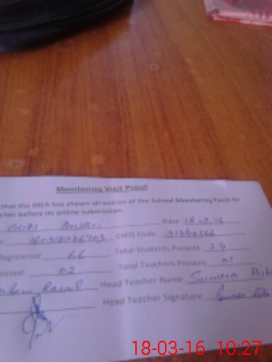 | Attendance Register | Head Teacher | MEA with School | Visit Proof |