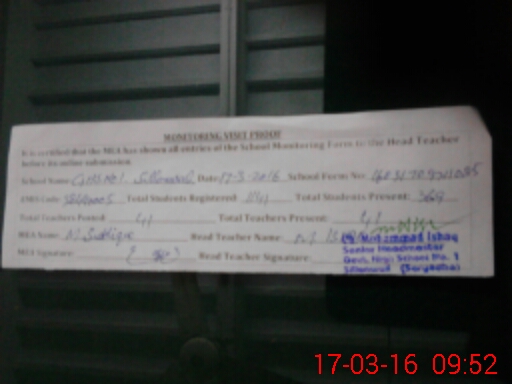 | EMIS Code: 38440005 | Name of School: GHS NO.1 SILLANWALI | |||