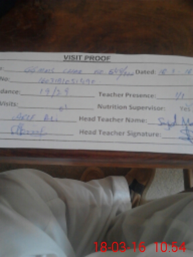| School Visited by School Health & Nutrition Supervisor (No. of Visits) | 1 | Name1: | Abdul Wahab | Name2: | |
