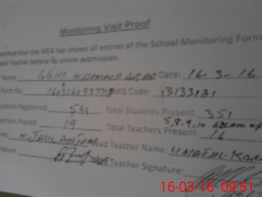 | Certified that this School was Inspected by the Undersigned MEA/DMO Today and the Information Stated Above is as Per Record. | |||||
