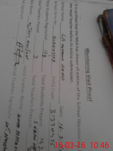 | Attendance Register | Head Teacher | MEA with School | Visit Proof |