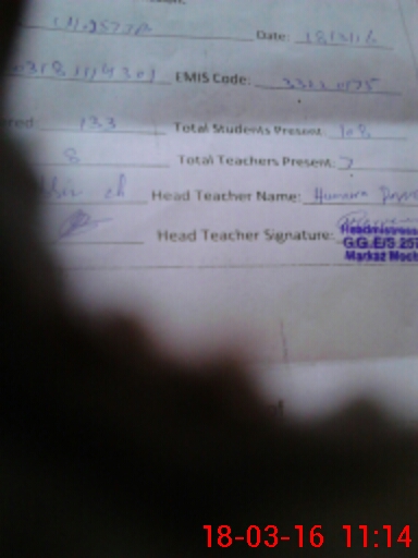| Name: HU**** PA**** Designation: (School Headmaster's/Headmistress's) SSE Phone/Cell Number: 03**** |