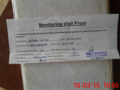 | Attendance Register | Head Teacher | MEA with School | Visit Proof |