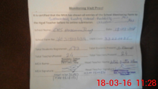 | Certified that this School was Inspected by the Undersigned MEA/DMO Today and the Information Stated Above is as Per Record. | |||||