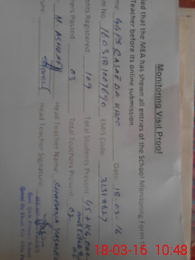| EMIS Code: 31310627 | Name of School: GGPS QASAIDA KHOO | |||
