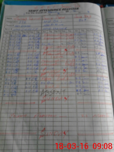 | Monitoring Date: 18-03-2016 | Start Time: 18-03-2016 08:57 AM | End Time: 18-03-2016 10:12 AM | Name of MEA: MU**** SA**** AK**** 13**** | |