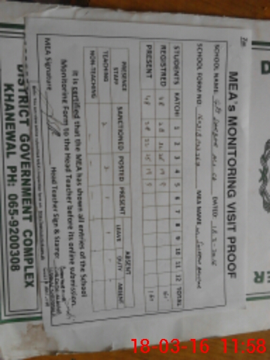 | EMIS Code: 36410198 | Name of School: GPS DARBAR ALI ASHAB, P/O MOUZA JAHAN PUR, KABIRWALA | |||