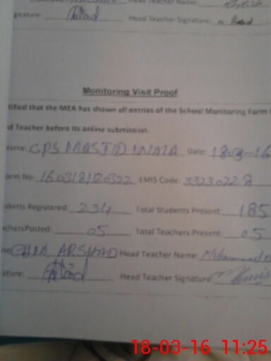 | Name: MU**** AL**** Designation: (School Headmaster's/Headmistress's) PST Phone/Cell Number: 03**** |