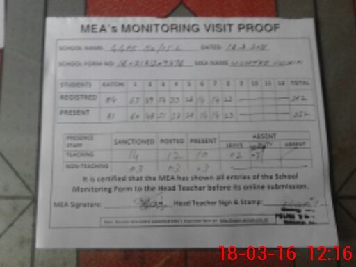 | Attendance Register | Head Teacher | MEA with School | Visit Proof |
