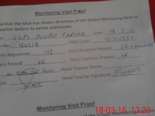 | EMIS Code: 31310337 | Name of School: GGPS DOBLE FAREED | |||