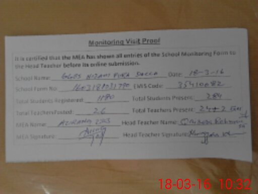 | EMIS Code: 35410082 | Name of School: GGHS NIZAM PURA DACCA | |||
