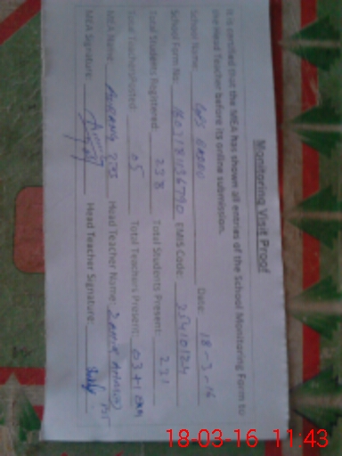 | Certified that this School was Inspected by the Undersigned MEA/DMO Today and the Information Stated Above is as Per Record. | |||||
