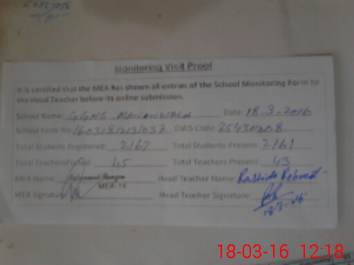 | Certified that this School was Inspected by the Undersigned MEA/DMO Today and the Information Stated Above is as Per Record. | |||||