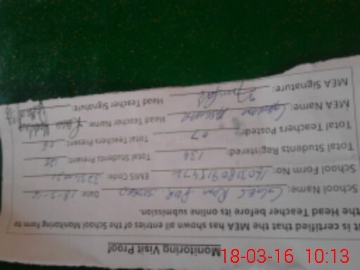 | Name: Az**** Pe**** Designation: (School Headmaster's/Headmistress's) EsT Phone/Cell Number: 03**** |
