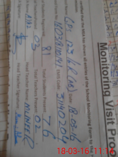 | Name: Mu**** Zo**** Am**** Designation: (School Headmaster's/Headmistress's) PST Phone/Cell Number: 03**** |