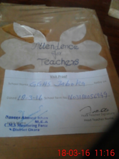 | Attendance Register | Head Teacher | MEA with School | Visit Proof |