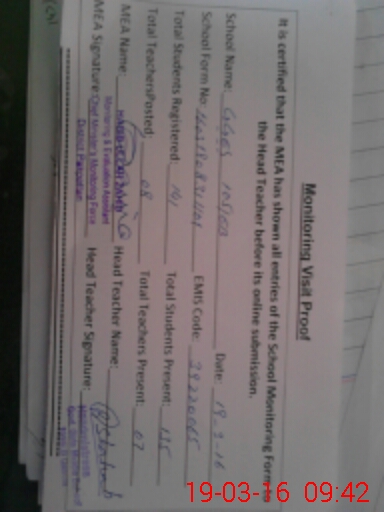 | Certified that this School was Inspected by the Undersigned MEA/DMO Today and the Information Stated Above is as Per Record. | |||||