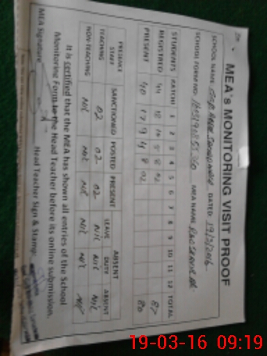 | Attendance Register | Head Teacher | MEA with School | Visit Proof |
