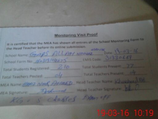 | EMIS Code: 31330669 | Name of School: GMPS ALLAH NAWAZ MANIK | |||