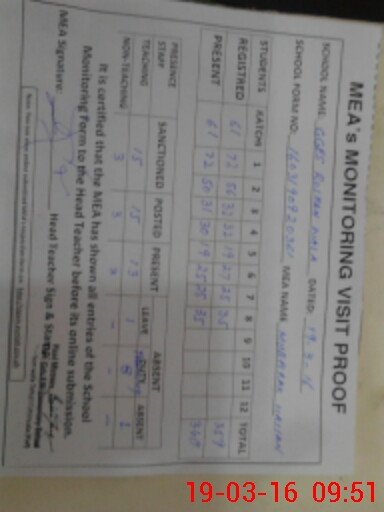 | Certified that this School was Inspected by the Undersigned MEA/DMO Today and the Information Stated Above is as Per Record. | |||||