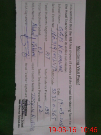 | Certified that this School was Inspected by the Undersigned MEA/DMO Today and the Information Stated Above is as Per Record. | |||||