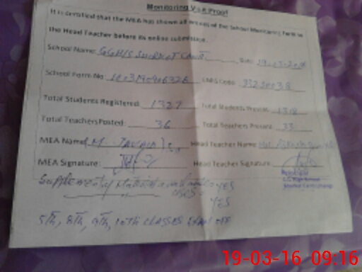 | Certified that this School was Inspected by the Undersigned MEA/DMO Today and the Information Stated Above is as Per Record. | |||||