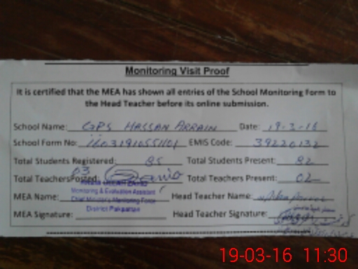 | EMIS Code: 39220132 | Name of School: GPS CHAK HASSAN ARRAIN | |||