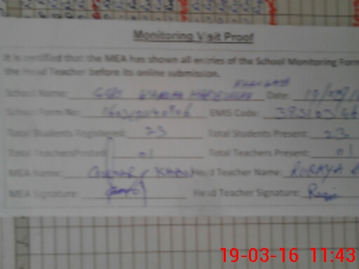 | Certified that this School was Inspected by the Undersigned MEA/DMO Today and the Information Stated Above is as Per Record. | |||||