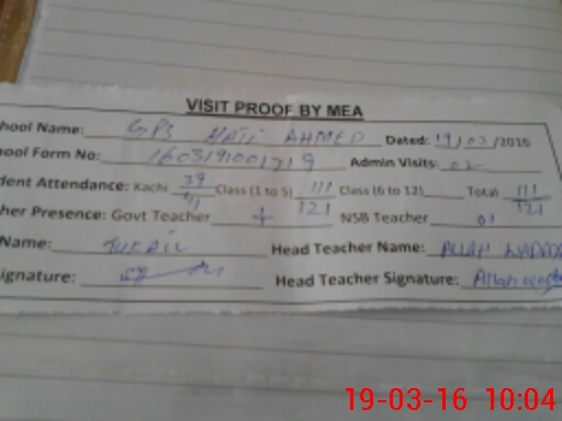 | Attendance Register | Head Teacher | MEA with School | Visit Proof |