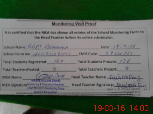 | EMIS Code: 39220561 | Name of School: GGPS REHMANIA QABOOLA | |||