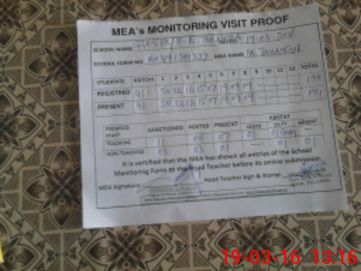 | Attendance Register | Head Teacher | MEA with School | Visit Proof |