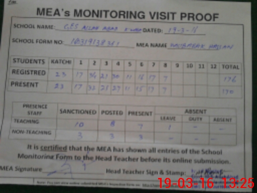 | Certified that this School was Inspected by the Undersigned MEA/DMO Today and the Information Stated Above is as Per Record. | |||||
