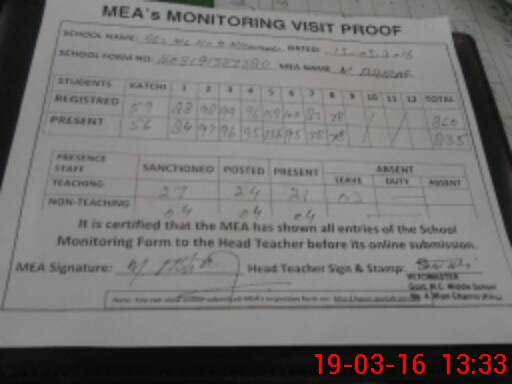 | Certified that this School was Inspected by the Undersigned MEA/DMO Today and the Information Stated Above is as Per Record. | |||||