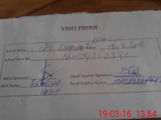 | Attendance Register | Head Teacher | MEA with School | Visit Proof |