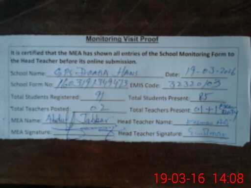 | EMIS Code: 32320103 | Name of School: GPS DOABA HANS | |||