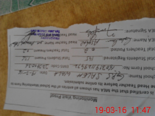 | Attendance Register | Head Teacher | MEA with School | Visit Proof |