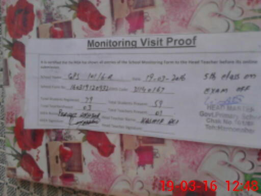 | EMIS Code: 31140167 | Name of School: GPS CHAK NO. 101/6-R | |||