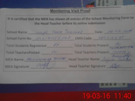 | Certified that this School was Inspected by the Undersigned MEA/DMO Today and the Information Stated Above is as Per Record. | |||||