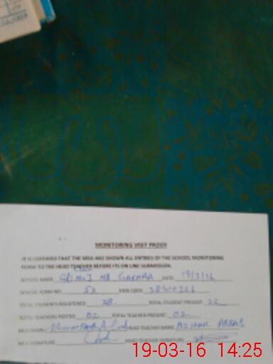 | Certified that this School was Inspected by the Undersigned MEA/DMO Today and the Information Stated Above is as Per Record. | |||||