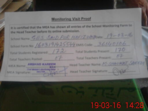 | EMIS Code: 36140106 | Name of School: GES SAID PUR HAFIZ WALA | |||