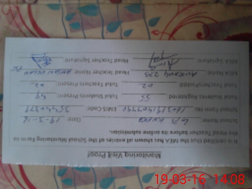 | Name: IH**** UL**** Designation: (School Headmaster's/Headmistress's) PTC/JV Phone/Cell Number: 03**** |