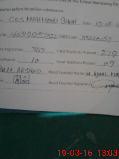 | EMIS Code: 33240053 | Name of School: GES MAHMOOD SHAH | |||