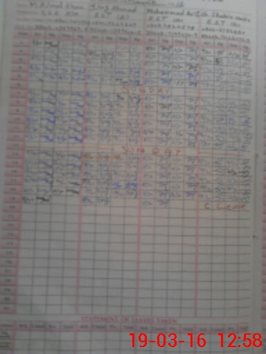 | CNIC | Full Name | Designation | R/C | Absence During Last Calender Month |