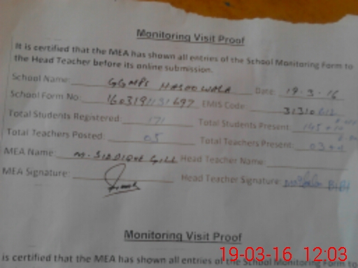 | Certified that this School was Inspected by the Undersigned MEA/DMO Today and the Information Stated Above is as Per Record. | |||||