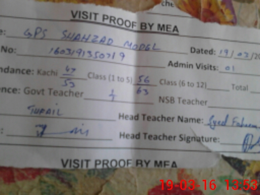 | Attendance Register | Head Teacher | MEA with School | Visit Proof |