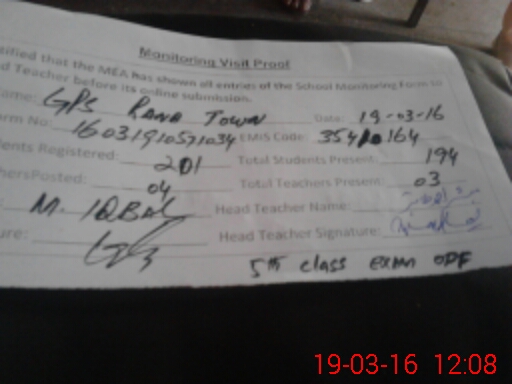 | EMIS Code: 35410164 | Name of School: GPS RANA TOWN | |||