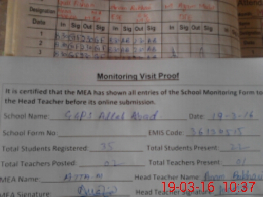| Attendance Register | Head Teacher | MEA with School | Visit Proof |