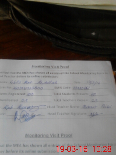 | Attendance Register | Head Teacher | MEA with School | Visit Proof |