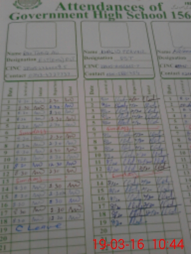 | CNIC | Full Name | Designation | R/C | Absence During Last Calender Month |