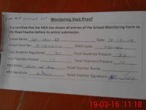 | Certified that this School was Inspected by the Undersigned MEA/DMO Today and the Information Stated Above is as Per Record. | |||||